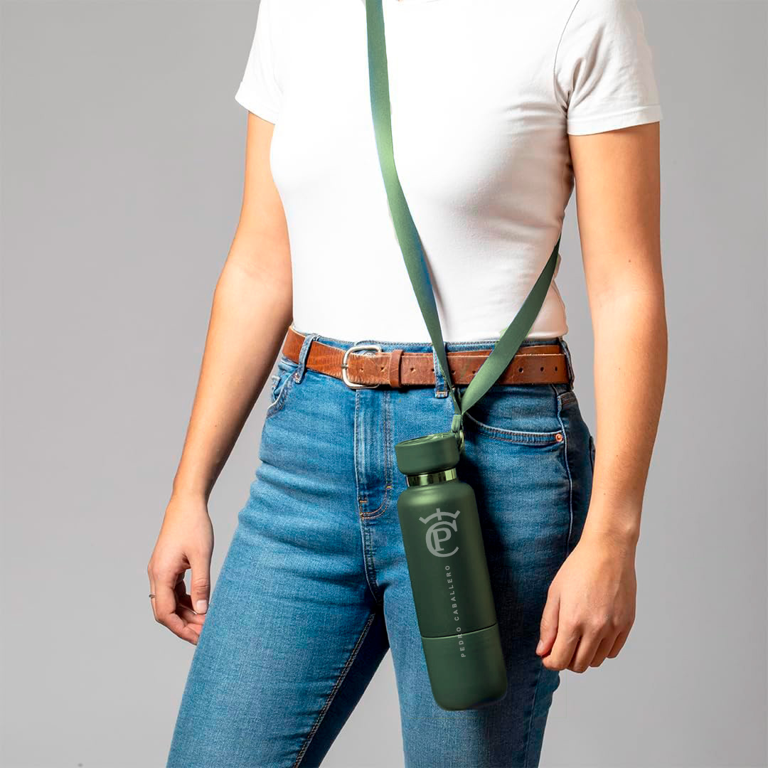 Botella Térmica de de acero inoxidable de 500 ml incluye un vaso de 300 ml integrado en la base y dos opciones de transporte intercambiables (Verde)