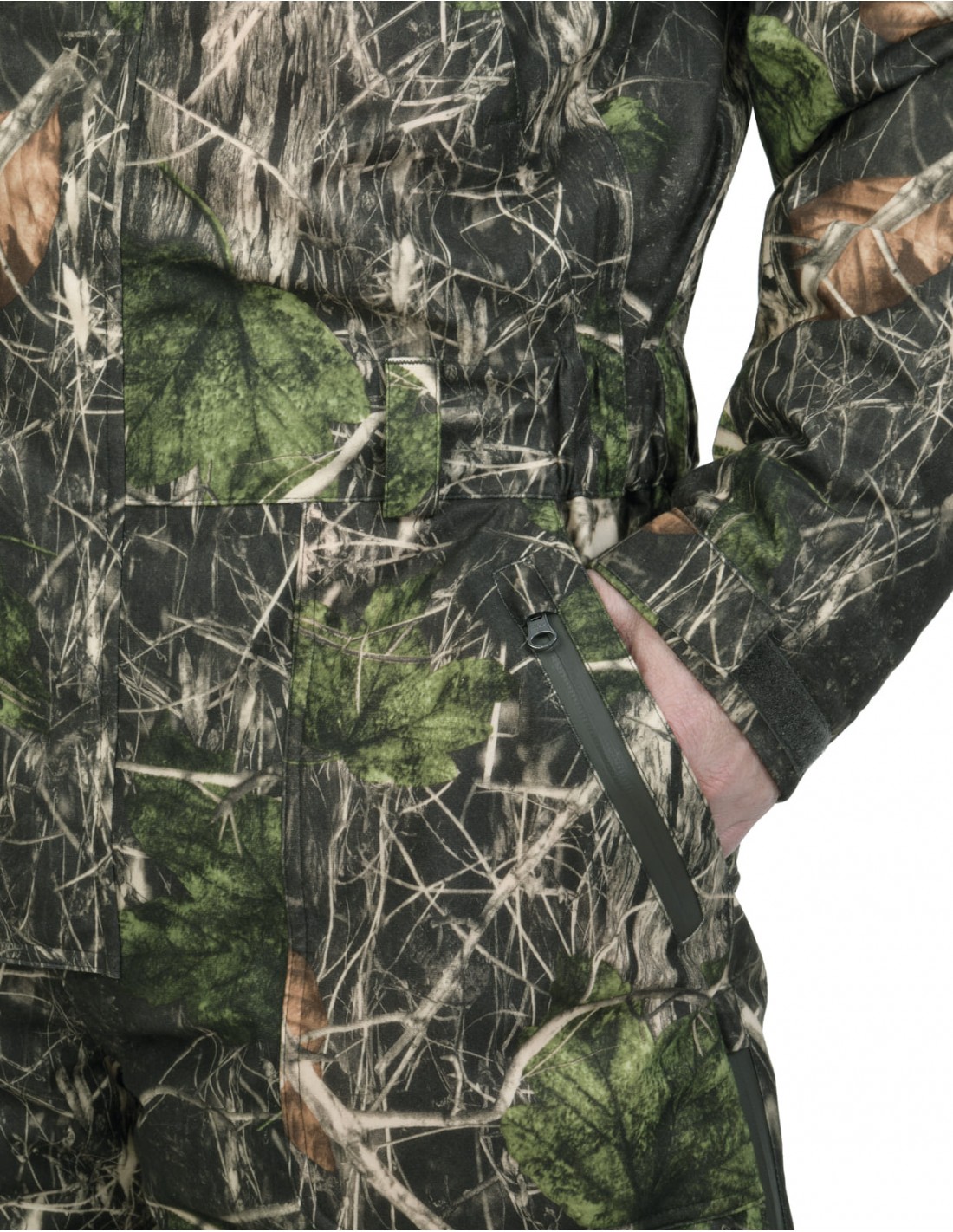 2 grandes bolsillos cargo delanteros con bolsillos superpuestos con cierre cremallera impermeable.