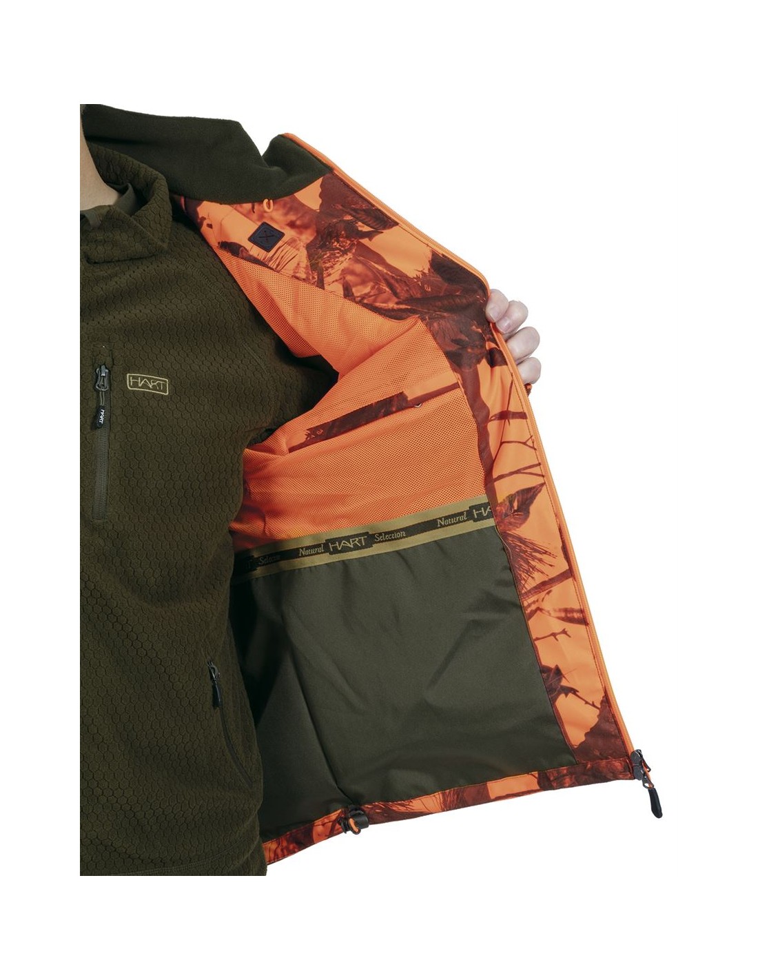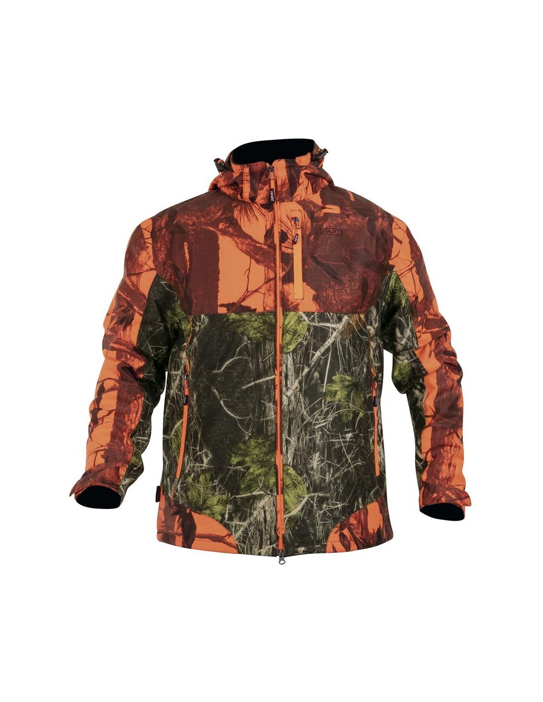 Combinación de mimetizados camo forest y camo blaze. Tejido técnico y silencioso. Bolsillos frontales con cremalleras impermeables. Bolsillo al pecho con gadget para emisora. Capucha desmontable. Morral trasero. Membrana OSMOTECH PLUS impermeable laminada y costuras selladas. Alta impermeabilidad (10000 mm) y transpirabilidad (10000 gr/m2).
