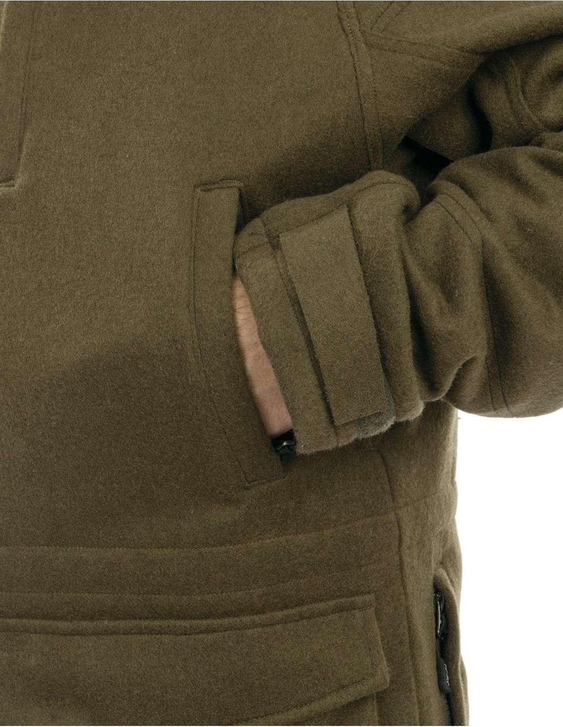 Una buena combinación de tejido de lana silencioso, cálido y resistente en la capa exterior con acolchado aislante HDI80 en el interior. La chaqueta perfecta para cazar en invierno. Bolsillos en el pecho para GPS y radio con puertos multimedia para conectar los auriculares en el interior. Bolsillos calientamanos con cierre cremallera en el pecho. Bolsillos cargo para ofrecer espacio de almacenaje adicional o calentamanos. Morral con dos aberturas de cremallera. Capucha ajustable con visera preformada que se puede desmontar y guardar en un bolsillo de malla en el interior. Puños ajustables. Incluye 3 bolsillos interiores: amplio bolsillo para guardar la capucha cuando esté desmontada, bolsillo de cremallera en pecho, bolsillo elástico para un fácil acceso. Cintura ajustable mediante tancas en el interior. Incluye cómodos tirantes desmontables en el interior para colgarlo de los hombros cuando no necesites llevarlo puesto.